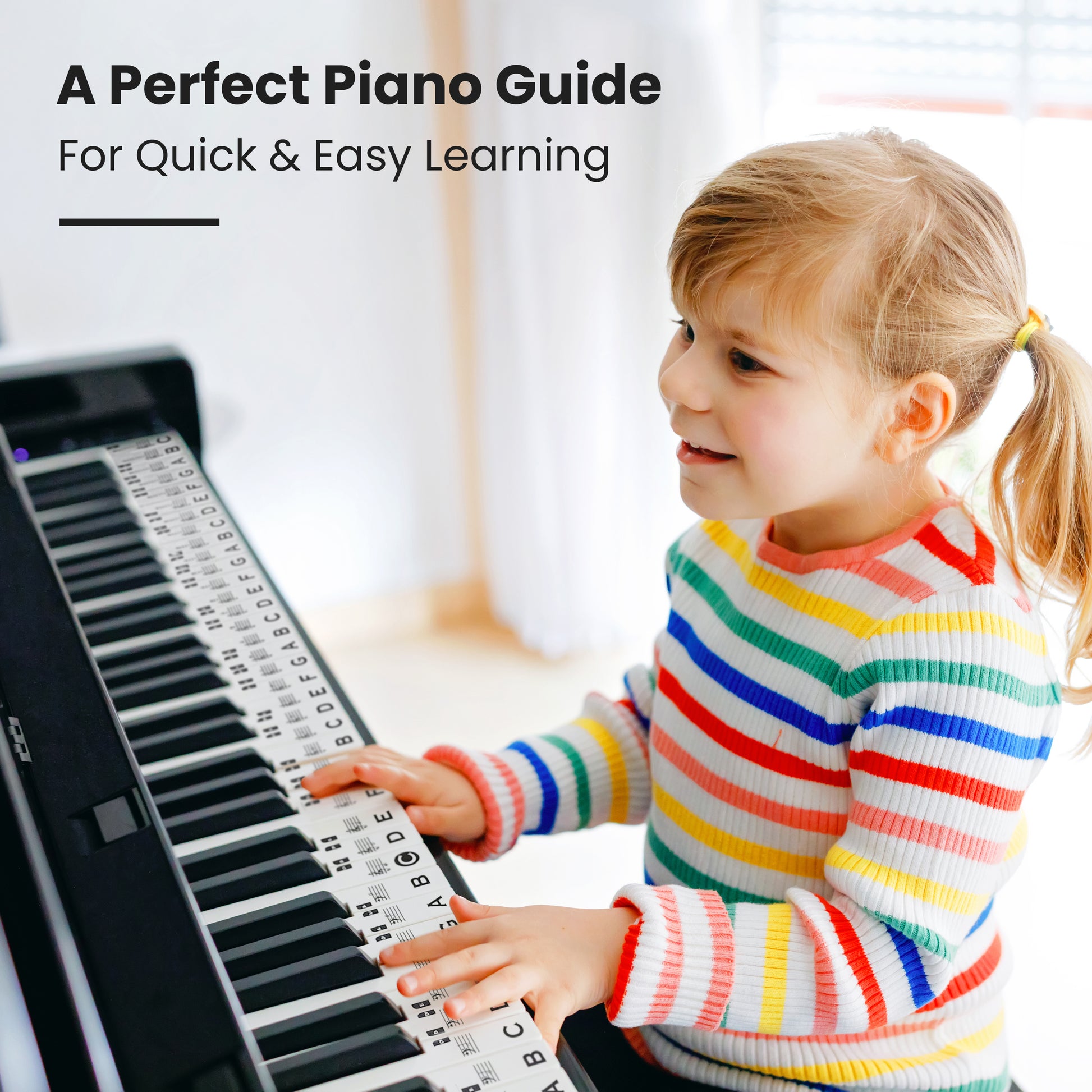 Make piano/keyboard learning easier and more enjoyable with our Note Stickers, designed for beginners of all ages, or those who want to learn to read notes on the piano or keyboard quickly and easily! With large, clear font, these stickers help you recognise notes instantly and build confidence as you play. And lots of beginner bonuses included too!